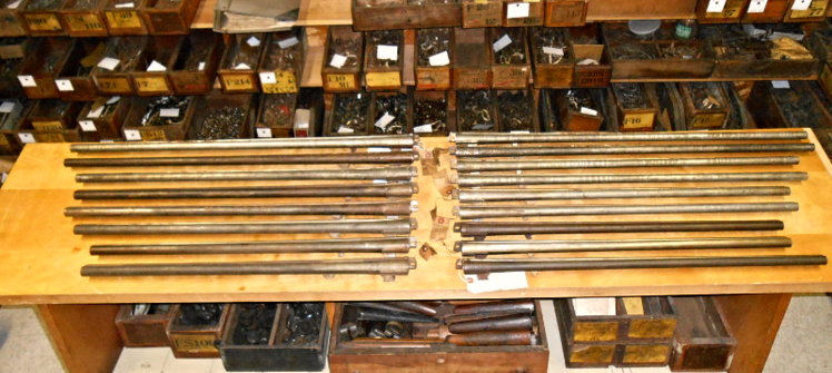 Samples of Barrels & Original Parts Bins: Over 108,000 original Fox Factory parts.