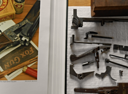 This resource represents a good quantity and wide selection of nearly all parts for all of the A.H. Fox Guns: all Philadelphia and Savage/Utica Guns, 12, 16, & 20 ga., Graded and Sterlingworth, Extractor and Ejector, including Kautzky Single Trigger Parts and some Single Barrel Trap Parts.